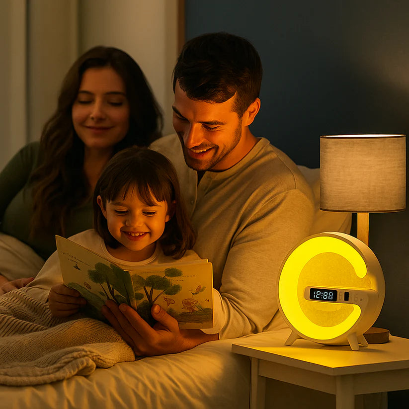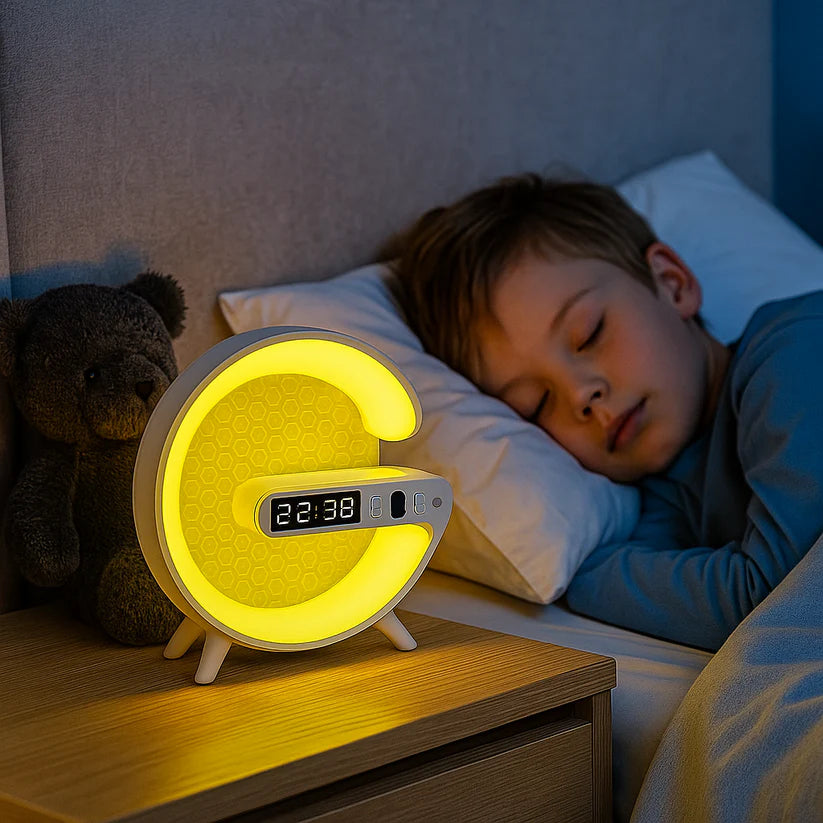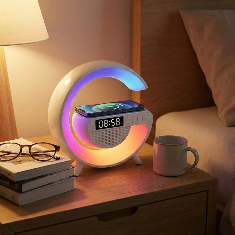 egy dekorlámpa, egy ébresztőóra, egy Bluetooth hangszóró és egy vezeték nélküli töltő egyetlen látványos készülékben!