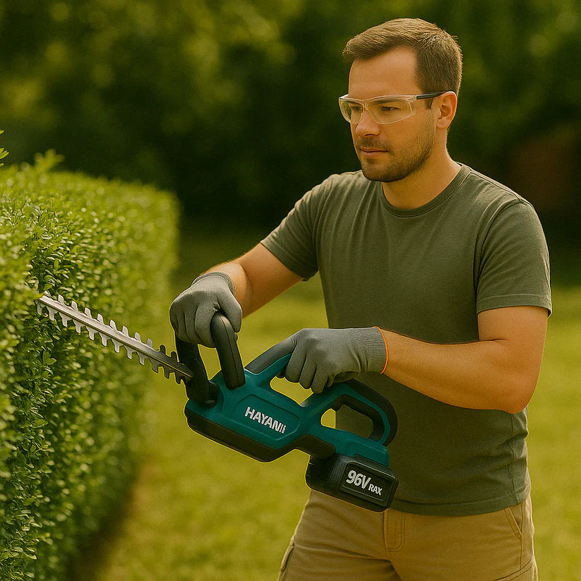 A Hayami® HA-1038 akkumulátoros sövényvágó a profi kertészek és igényes hobbikert-tulajdonosok álma: vezeték nélküli szabadság, benzines gépeket megszégyenítő teljesítmény és könnyed irányíthatóság egy kompakt eszközben. A nagyfeszültségű 96 V Li-ion akkumulátorok állandó nyomatékot biztosítanak a vágás teljes időtartama alatt, míg a szénkefe-mentes motor jelentősen csökkenti a hőtermelést és az energia-veszteséget.