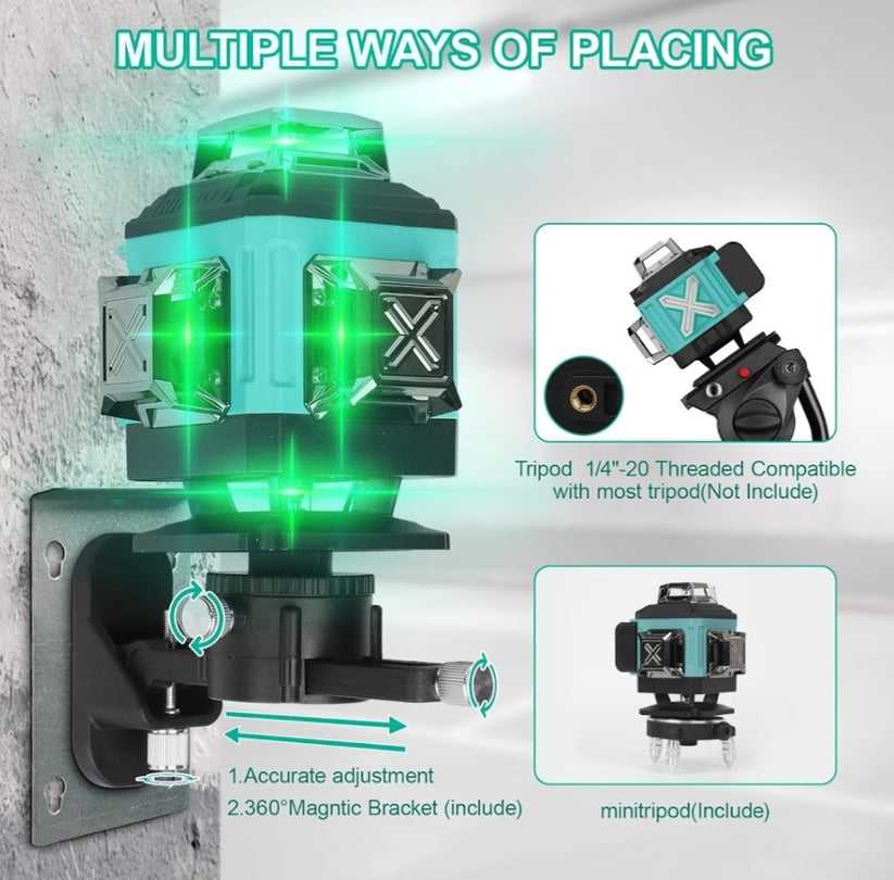 - Lézer típusa: 4D 16 vonalas zöld lézer