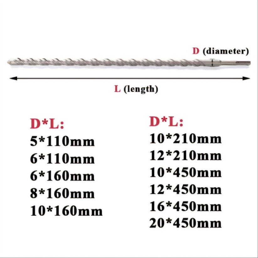 - Fúróméretek: 5x110mm, 6x110mm, 6x160mm, 8x160mm, 10x160mm, 10x210mm, 12x210mm, 10x450mm, 12x450mm, 16x450mm, 20x450mm