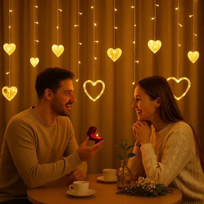Teremts meghitt, ünnepi és romantikus hangulatot pillanatok alatt a Szív Alakú LED Karácsonyi Függönyfénnyel, amelyet mindenki imádni fog!